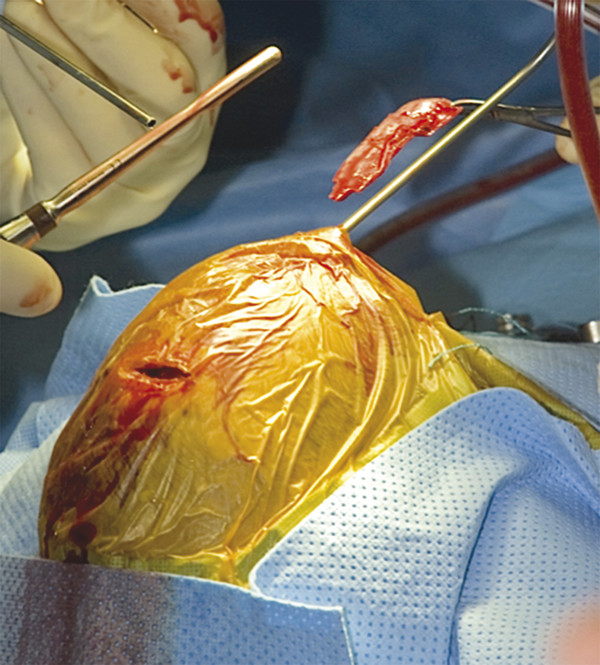 Fig. 1.5 Endoscopically assisted suturectomy with helmet therapy; minimally invasive removal of the sagittal suture.