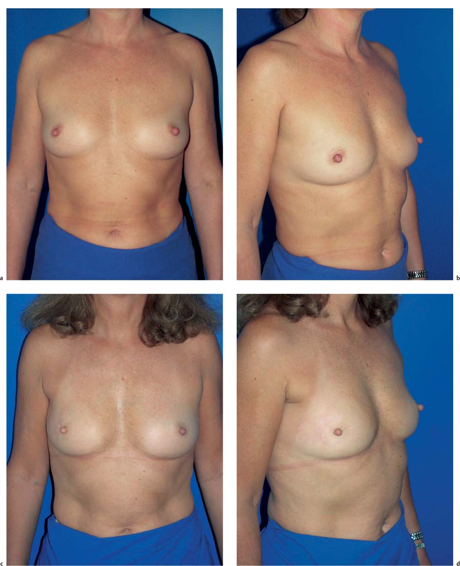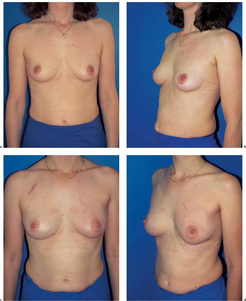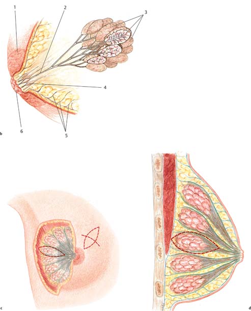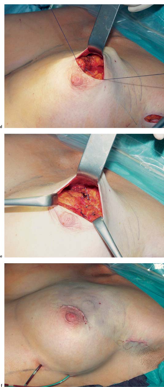 The subcutaneous glandular advancement flap can be used in about two-thirds of the patients ( Figs.10.5–10.7 ). In the remaining third, other plastic surgery techniques have to be used—either as skin resection measures to lift the breast, or with a flap transfer to replace volume (see below).