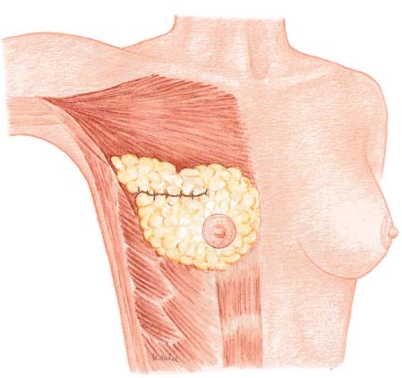 Dissection should not be too wide, as this can lead to parenchymal necrosis. Creation of a rotation flap—e. g., using the breast tissue projecting into the axillary region to fill in defects in the superolateral quadrant—has also not proved useful. Allowing the defect to fill with wound discharge and blood is an unsuitable method of correction.