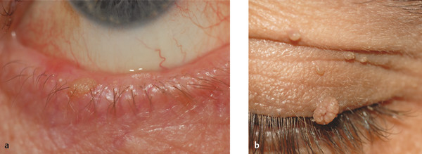 Eyelid and periocular skin lesions are very common in patients referred to ophthalmologists. The main goal in the evaluation of these lesions is to differentiate malignant from benign lesions and to recognize the relevance of some lesions as markers of the potential for systemic malignancies, such as Muir-Torre syndrome (MTS)—a combination of neoplasms of the skin (usually sebaceous adenoma, sebaceous epithelioma, or sebaceous carcinoma but also keratoacanthoma) and a visceral malignancy (usually colorectal, endometrial, small intestine, and urothelial).