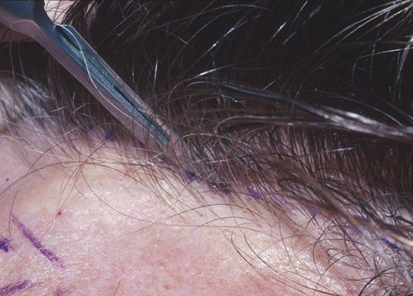 Making incisions properly is a key step in which the surgeon exercises direct control over the detectability of the resultant scar. To minimize detectability, all incisions within hair-bearing scalp or at a hair–scalp, hair–forehead, or beard–skin junction are made parallel to hair follicles to prevent injury to them and will not result in alopecia appearing as a “wide scar.” Hair follicles are inclined to the same direction as the hair shafts, and therefore incisions should begin parallel to the hair shafts.