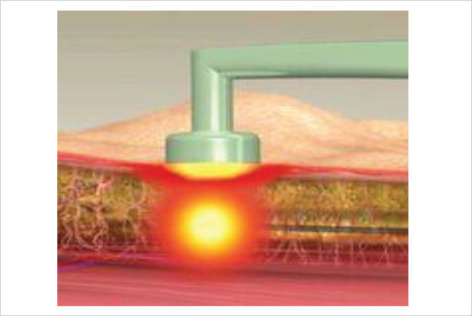 The subcutaneous tissue between the two probes is heated accordingly. The treated tissue tends to be hotter at the tip of the probe and recedes in temperature as it approaches the handle.