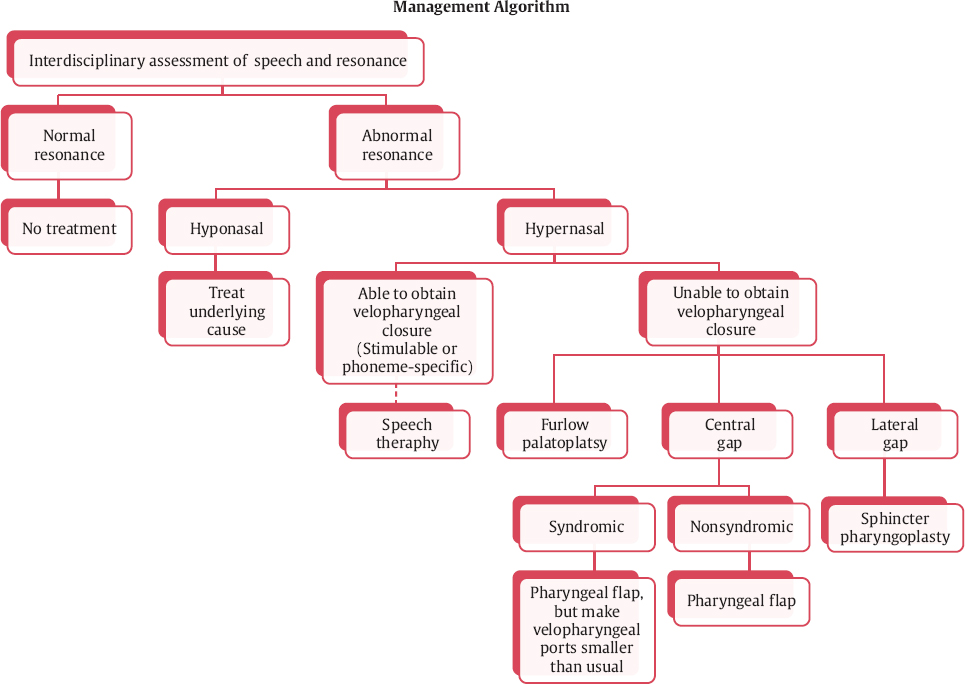 Fig. 12.1 Algorithm for treating velopharyngeal insufficiency. Furlow double-opposing Z-plasty palatoplasty is an option for small gap or touch closure with midline bubbling, which is not discussed in this chapter.