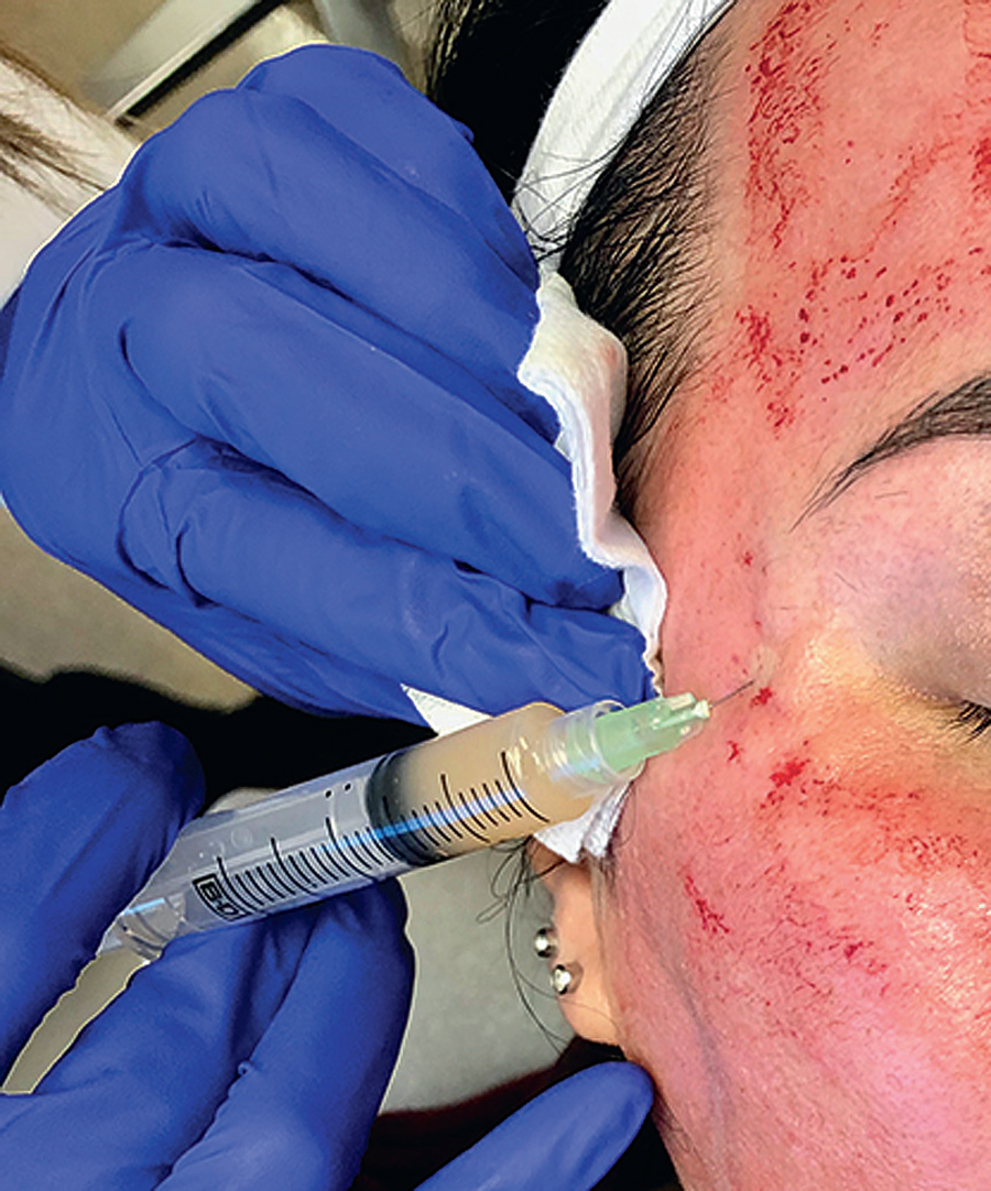 Familiarity with facial vascular anatomy along with maintenance of the injection plane within an intradermal rather than subdermal plane when appropriate may reduce the risk of vascular compromise. 18 Awareness, early recognition, and urgent treatment of vascular complications are essential. To minimize the risk of vascular complications, it is pragmatic to inject the smallest possible volume capable of producing the desired effect in small and discrete aliquots, aspirate prior to each injection, avoid adulteration of PRP preparation with unapproved fillers, and employ smaller needles (30–32 gauge) with prudent technique and the judicious use of pressure. 19