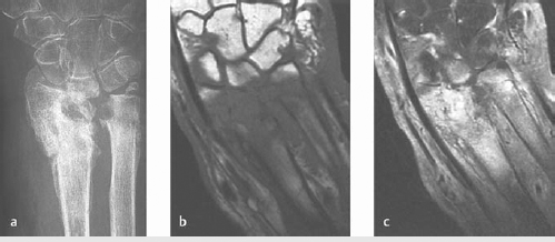 MRI with contrast best test to assess for extent of infection and assist in surgical planning (► Fig. 13.2).