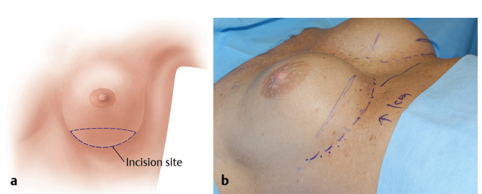 The new location of the IMF may be estimated with the patient in an upright or partial upright position, with her implant or an implant trial in position and the fold marked internally with a surgical marker or methylene blue and a 22-gauge needle.