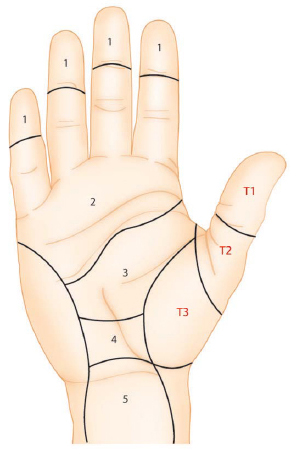 Flexor tendons are divided into five zones (► Fig. 14.1).