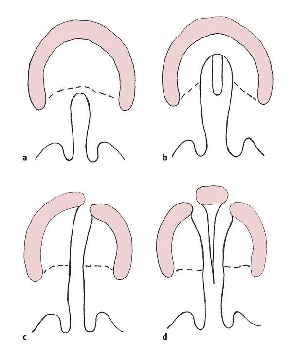 In cleft lip and palate, the defect extends along the junction of the primary and secondary palate, resulting in an alveolar gap. When the alveolus is cleft, lateral incisors are frequently absent and other dental anomalies, such as supernumerary teeth, are common. The palatal component of orofacial clefts is often described using the Veau classification (Fig. 15‑2).