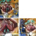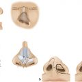Isolated cleft palate involves secondary palatal structures. Maxillary and palatine bones are separated at the midline, resulting in an oronasal fistula. The tensor veli palatini aponeurosis, levator veli palatini muscles, and palatopharyngeus muscles are disoriented parallel to the cleft, inserting on the posterior hard palate (Fig. 15‑1). As a result, function of the velopharyngeal sphincter is compromised. These muscles normally participate in ventilation and pressure equalization of the middle ear. Altered anatomy of these muscles results in Eustachian tube dysfunction, frequently causing chronic middle ear effusion, hearing loss, and otitis media.