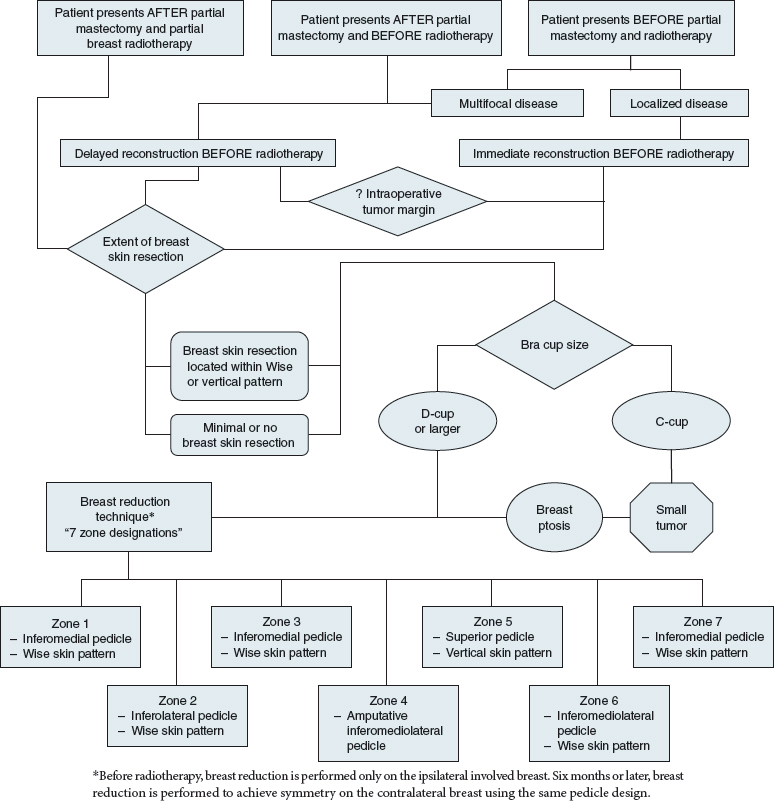 This chapter introduces a management algorithm to guide the clinician in determining which patients are good candidates for having the breast-reduction technique to repair a partial mastectomy defect. It focuses on patient selection and presents new zone designations of the breast, with corresponding designs for dermoglandular pedicles based on the tumor location.