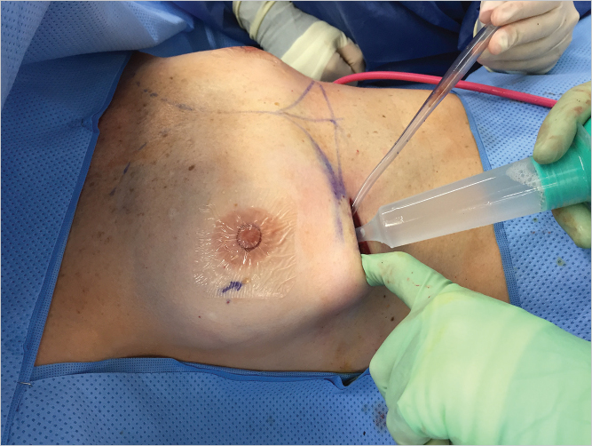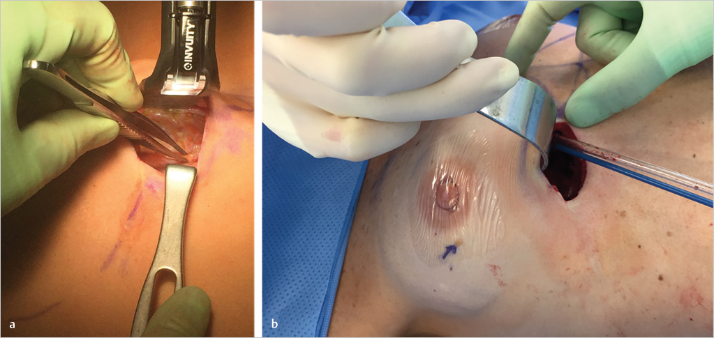 Further, subpectoral pocket dissection is undertaken using lighted fiberoptic breast retraction.