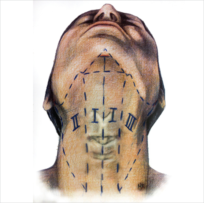 The neck is divided into three zones (▶Fig. 16.1) one medially (I) and two laterally (II, III). The central zone I is the area between the right and left tracheal gutter. The lateral zones II and III extent from the medial border of the sternocleidomastoid muscle to the jawline and the lateral tracheal gutter. We apply the RFAL handpiece separately to each area.