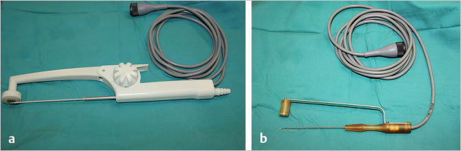 In the neck we use two devices: the necktite cannula (▶Fig. 16.2a) and the facetite handpiece (▶Fig. 16.2b).