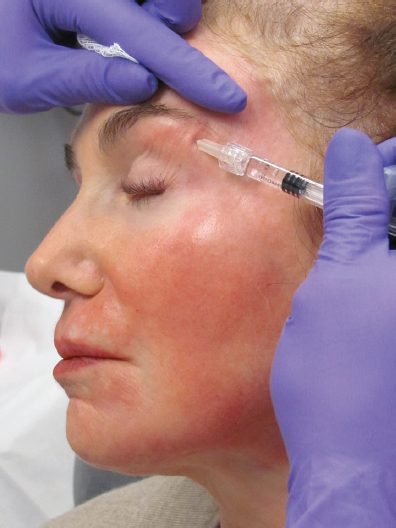 Brow augmentation is accomplished using a linear, retrograde injection along the contour of the upper orbital rim.