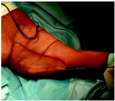 The arm in the massive weight loss patient can be considered as a sleeve that is too wide and too long. We consider it important to reduce the axillary diameter at the level of the posterior axillary line. The deformity of the upper arm can be divided into four general categories by the classification scheme of Teimourian and Malekzadeh:13