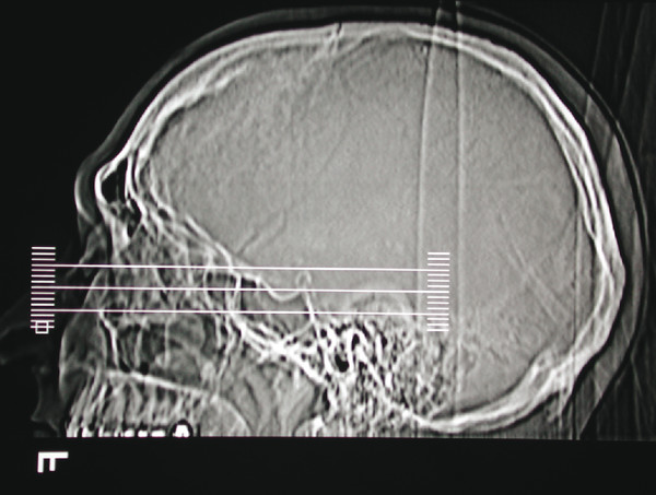 The scout film should be examined. This shows the slices as sectioned by the computer (Fig. 18‑13), which assists in orientation of the plane of scanning performed. The images should be examined systematically, comparing both sides for any asymmetry. It is important to look for any rotation of the head that can lead to misleading asymmetries of no diagnostic significance. The bone structures are examined first, followed by the soft tissues. Interpretation of the images requires practice and experience. It is extremely helpful to review the images with an experienced radiologist, preferably in a multidisciplinary team meeting.