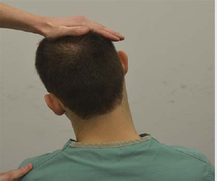 • With head in neutral position, press down on the top of the head with moderate pressure.