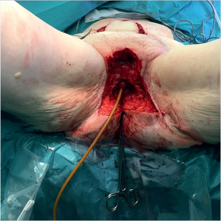 The procedure is performed with the patient in supine position under general anesthesia. In applicable cases this is done with the option of placing the patient in the lithotomy position to facilitate simultaneously raising the flap and preparing the vulvoperineal region.
