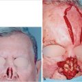 The supraorbital periosteum is divided completely to the level of the lateral orbital rims with an endoscopic carpal tunnel hook knife scalpel. Resection of the corrugators, procerus, and other depressors is achieved bluntly with a grasping forceps. The supratrochlear and supraorbital nerves are identified and preserved. The glabellar region is inspected after resection to ensure that the contour is smooth and not depressed or irregular. If there is any depression, a small amount of fat or SMAS can be used to fill the area (Fig. 21‑7, Fig. 21‑8, Fig. 21‑9).
