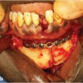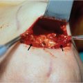 Fig. 21.7 Resection of depressor muscles under direct visualization; note suspension sutures to create optical cavity. (Note the surgeon is using bimanual palpation and the assistant is controlling the endoscope.)