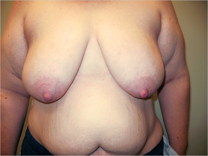 The breasts of most obese women have a large percentage of fatty tissue. Their heavy breasts are stretched and may rotate over the inframammary crease, resulting in nipples that point inferiorly, or even toward the abdominal wall in severe cases. Significant weight loss may result in a dramatic loss of breast volume, creating additional ptosis associated with inadequate skin retraction.