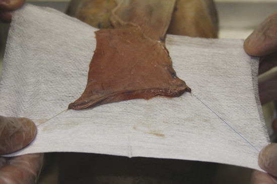 Fig. 21.2 This picture shows how to fold back the flap on itself to maximize the thickness of new nasal septum and how to mark the extremes of the flap with stitches to facilitate insertion into the nasal cavity.