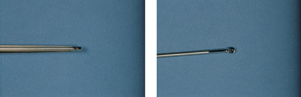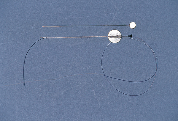 Fig. 21.14 (a) An Anderson–Hwang grooved director. (b) A Crawford retrieval hook.