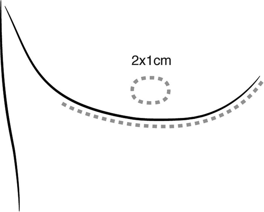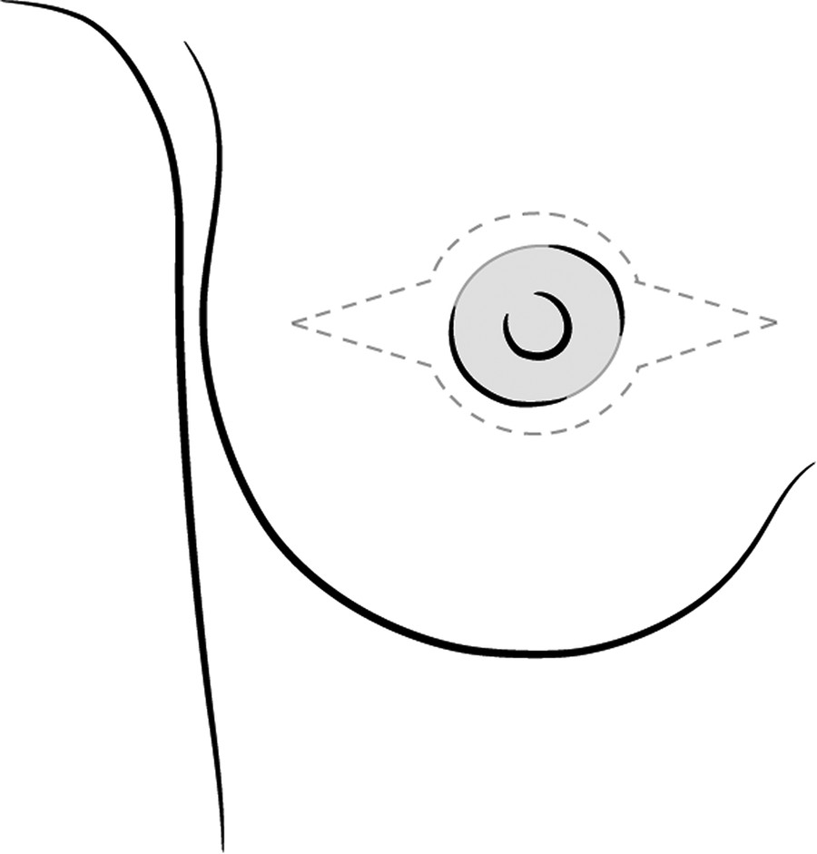 There are no universally established guidelines for nipple position and areolar diameter in trans men. Some believe there is a tendency to create areolas that are too large and placed too high and medial on the chest wall. 26 , 27 Atiyeh et al proposed a mathematical formula for determining the ideal position for nipple placement in men after massive weight loss using the umbilicus–anterior axillary fold apex distance and the umbilicus–supersternal notch distance. 28 In addition, McGregor and Whallett reported on their technique for nipple-areola placement. 29 They suggest suturing threads at key points: the midclavicular position as the vertical axis, the midline axis of the sternum as the horizontal axis, and the suprasternal notch. The midline axis of the sternum is determined from a point on the upper arm midway between the elbow crease and the apex of the anterior axillary fold. The sutures are pulled along their axes. The point at which the sutures intersect is chosen for the nipple site. A 2-cm disk at this site is de-epithelialized for reception of the nipple-areolar graft. However, according to Monstrey et al, “absolute measurements can be misleading.” 24