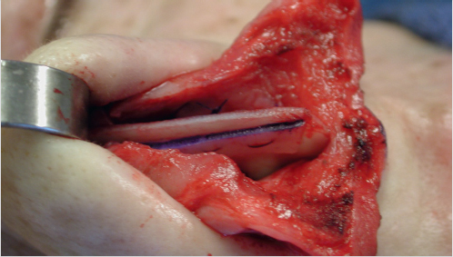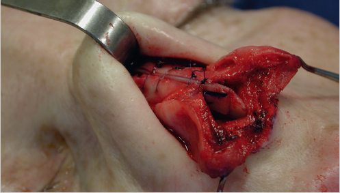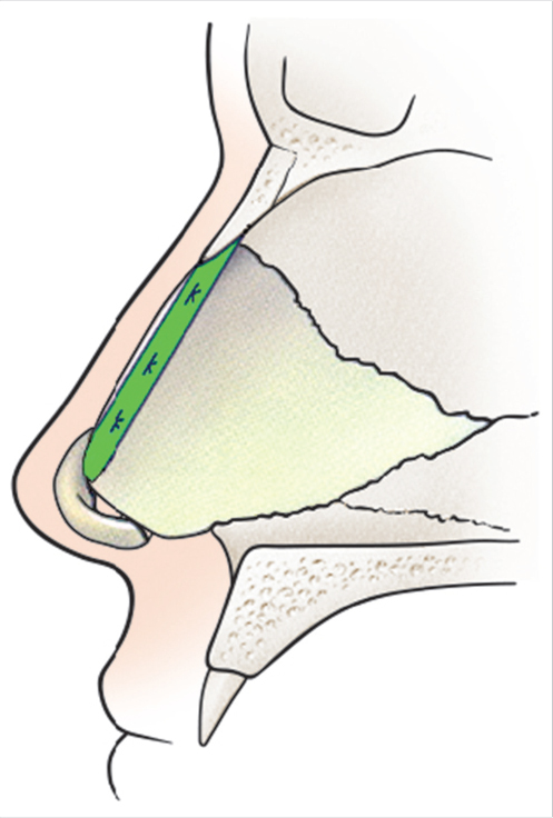 Recess the spreader grafts 1 to 2 mm to prevent undesired widening of the dorsum (Fig. 22.2).
