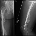 (a and b): Immediate post-operative radiographs after resection of comminuted and devitalized bones (square osteotomy of bone ends) and application of Ilizarov external fixator and proximal tibial Gigli saw osteotomy for bone transport