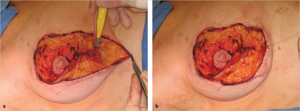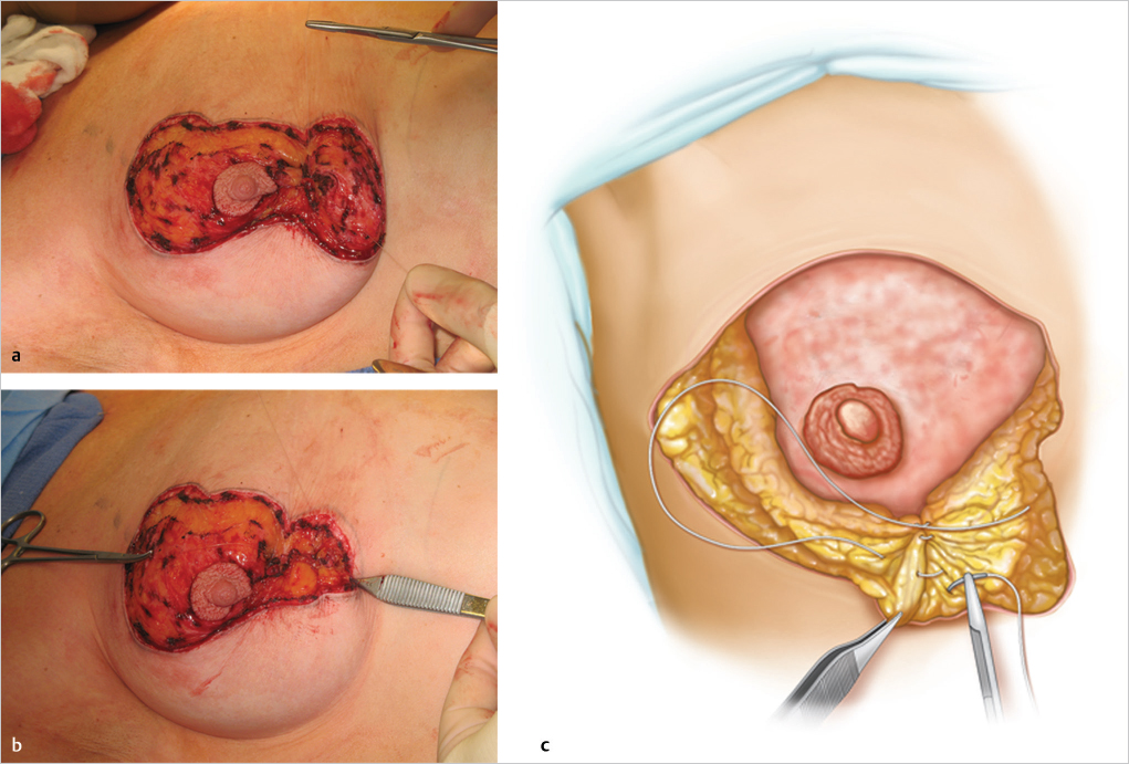 The nipple–areolar diameter is marked with an imprint from a “cookie cutter” marker, typically at 42 mm. This imprint is incised into, but not through the deep dermis (▶Fig. 23.3).