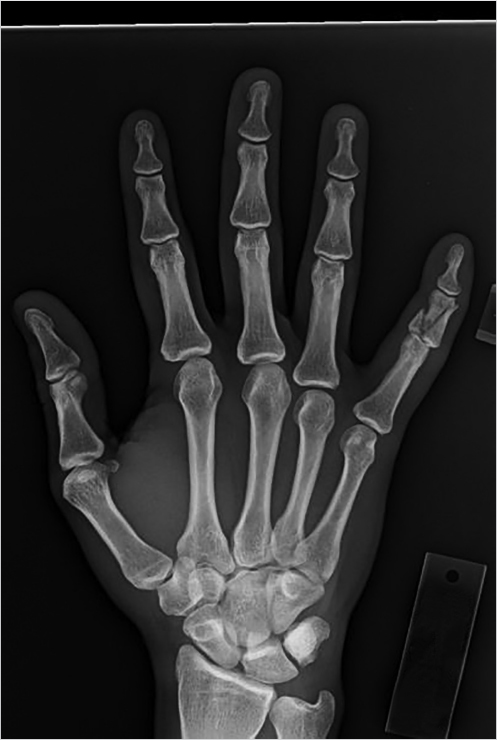 Fig. 24.2 Hand series X-ray of right small finger middle phalanx.