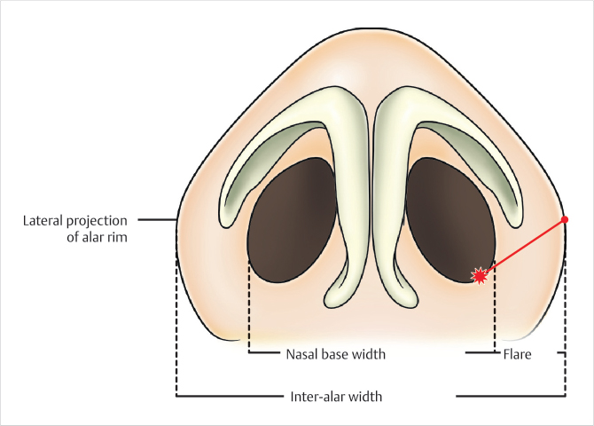 Alar flare is present when the interalar distance is greater than the alar base width (Fig. 27.1).