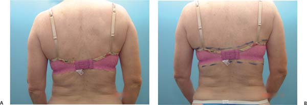 Good candidates for the BLBL are women with undesirable skin laxity, skin redundancy, and excess adiposity of the upper back that result in unsightly rolls and folds. This can include massive weight loss and nonobese individuals alike. Patients are frustrated and aggravated with this laxity and excess adiposity, particularly in conforming, tightly fitting clothing. This tissue can be seen to bulge above and below the bra line, resulting in multiple rolls and folds along the lateral aspects of the upper back.