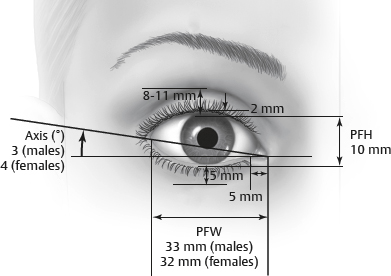 Palpebral fissure: Aperture between upper and lower eyelids (Fig. 29-3)