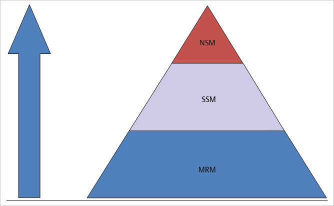 Fig. 3.1 Surgical conservatism in breast cancer: natural evolution? (MRM, modified radical mastectomy; NSM, nipple-sparing mastectomy; SSM, skin-sparing mastectomy)