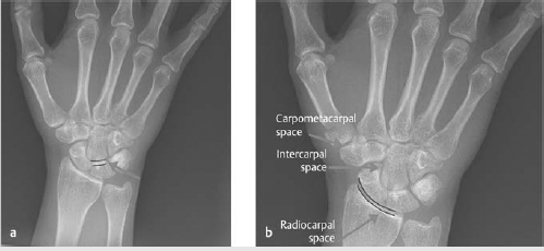 The joint spaces of the wrist normally have a width of 2 mm or less (► Fig. 3.3).