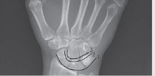 Gilula’s lines are three arcs drawn on the PA view, which are used to assess the alignment of the carpal bones (► Fig. 3.4):