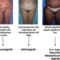 Not surprisingly, these patients have routinely lost massive amounts of weight but are left draped with loose, ptotic skin on their trunk, arms, and legs. This has led to numerous procedures that are very effective in addressing this skin laxity, but usually at the expense of visible scarring. A prime example of this is the medial thigh. Post–bariatric surgery patients have a significant functional morbidity from excess medial thigh skin, including skin breakdown and intertrigo in the inguinal creases and thigh creases, as well as potential disabilities in ambulation. However, patients often find that solutions involving a long visible scar along their inner thigh are aesthetically unacceptable. The lateral thighs and hips are usually addressed through a lower body lift in an earlier stage of body contouring.