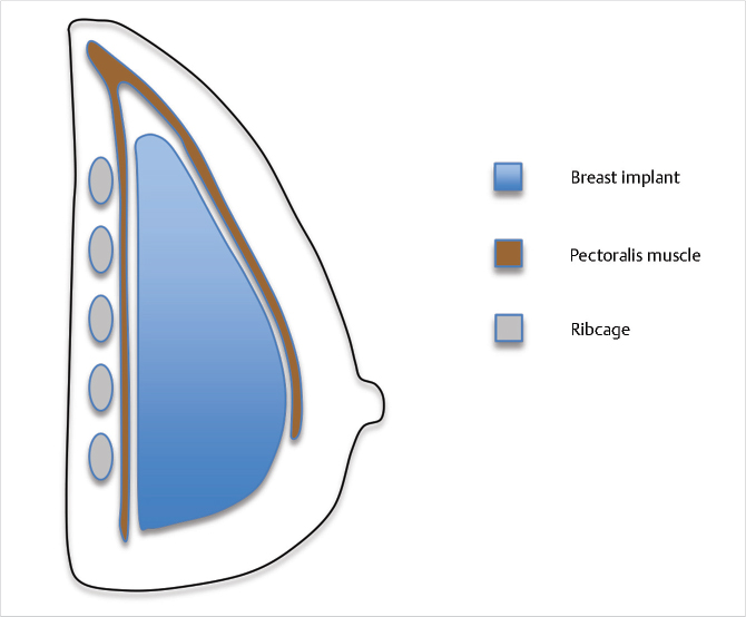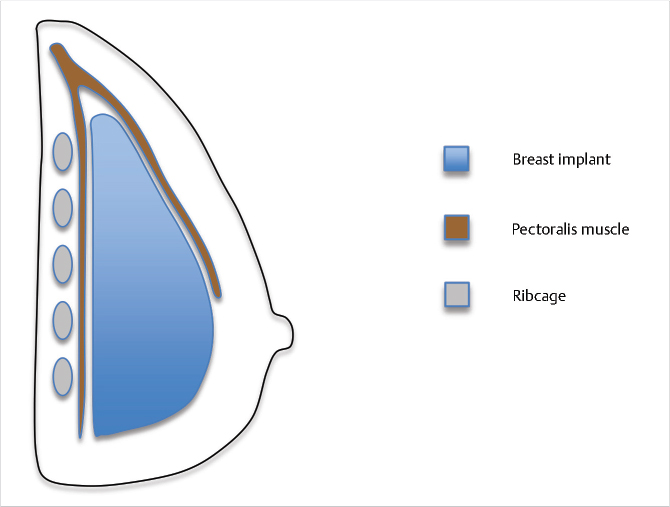 This pocket provides both good projection and shape, and minimizes distortion of the implant in muscular or active patients. This pocket may also provide a small degree of lift in breasts with mild ptosis and volume deflation. Utilization of this pocket requires at least 2 cm of upper pole soft tissue coverage as determined by pinch test. Drawbacks of this pocket include a potentially higher capsular contracture rate, more implant edge palpability, greater visible rippling or implant visibility, and an increased degree of mammography interference. 1 , 15