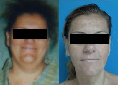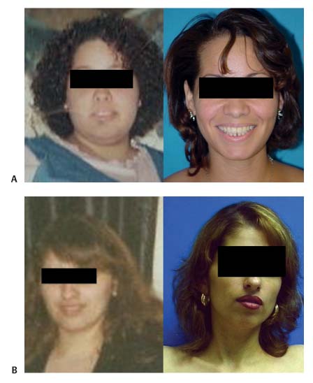 Once the patient’s concerns and expectations have been addressed, it is important to establish the method of weight loss, whether it was by gastric bypass, laparoscopic banding, or diet and exercise. This information, along with the patient’s age, will guide further questions about the patient’s medical and surgical history. The use of nutritional supplements, anemia, other associated procedures, and the occurrence of complications should be investigated. The maximum weight, total weight loss, and chronology of weight loss should be elucidated. In general, patients continue to lose weight many months after their surgery. They should be stable in their weight for at least 6 months before undergoing any facial procedures because their appearance may change if weight loss continues. Most patients will have undergone other body modification procedures before concentration on facial rejuvenation.