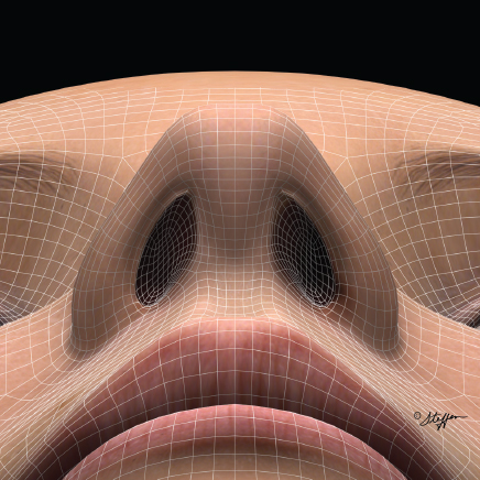 The rich arterial blood supply to the nose is derived from branches of the external carotid system, mainly the facial and superior labial arteries. 4 The arteries are accompanied by corresponding veins and lymphatics, all of which run within the superficial musculoaponeurotic system (SMAS). Elevating the SSTE off the underlying nasal skeleton should be performed deep to the SMAS during rhinoplasty to preserve maximal blood supply, minimizing the risk of intraoperative bleeding and postoperative ischemia with possible tissue necrosis. Staying in the proper plane of dissection is particularly important in revision and secondary cases, where the baseline blood supply may already be compromised.