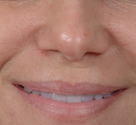 Standard and uniform color photographs before and after surgery are important to document a patient’s deformity and how it has been corrected surgically. Beyond medicolegal utility, photography is an important tool in operative planning and execution. The traditional 35-mm color slides have been replaced by digital photography in the standard six head positions (full frontal, right and left lateral, right and left oblique, and basal views). Use of a standard 105-mm portrait lens with two light sources positioned above and 45 degrees from the patient (seated in front of a light blue background) is ideal. Additional useful photo documentation includes fullface frontal, right and left lateral, and close-up frontal smile views. Attention should be paid to the close-up frontal smile view. Patients with smile patterns where the oral commissures are the highest point of the lips upon smiling are at risk for upper lip creasing when suturing a caudal septal extension graft or columellar strut to the anterior nasal spine. Those patients should be treated with grafts that are just short of and not sutured to the nasal spine ( Fig. 33.10 ).