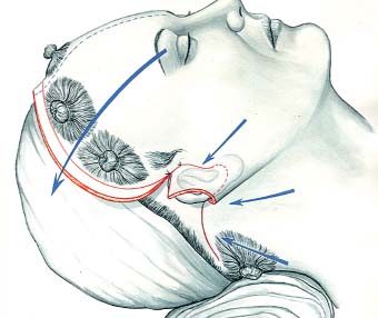 A satisfactory outcome of an aesthetic facial procedure is attained when signs of an operation are undetectable and anatomic landmarks have been preserved. Visible scars and dislocation of the hairline are among the most common complaints, and great care must be exercised to avoid these stigmata. The Pitanguy round-lifting technique has evolved from these concerns.