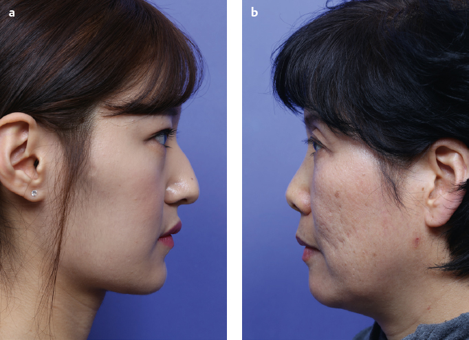 For tip surgery in Asians, projection, rotation, and volume are the three most important factors to consider. A harmoniously matched projection of the nasal tip adjusted to the augmented dorsum, with a gentle round shape instead of a well-defined, angulated tip, along with subtle accentuation are the ideals that contemporary Asian nasal tip surgery aspires to achieve.1 One important point that should be kept in mind is that many Asian patients request an increase in tip projection with avoidance of excessive increased tip rotation. The amount of projection and rotation necessary for a case differ according to personal preference, age, sex, occupation, and overall facial features. In general, most patients require and undergo dorsal augmentation, so the amount of tip projection should be balanced accordingly. Nasal tip width should always be evaluated in the context of overall facial anatomy and not as an isolated feature. If the face is relatively wide, a narrow tip can appear conspicuous and demonstrate an operated-on look.
