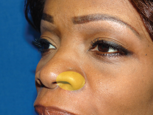 Analyzing noses of patients of African descent for rhinoplasty immediately reveals a broad diversity in shape and skin thickness that makes it difficult to use strict anthropometric standards as a guide. Though anthropometric data have been described, it is important that surgeons interested in rhinoplasty in this group develop a systematic approach of analyzing each nose based on concepts of the beautiful African nose. 14 One way to develop this concept is to closely look at noses of individuals of African descent who make “the most beautiful black women list” published by contemporary popular magazines. Noses of these women may be examined for trends in radix projection, profile shape, dorsal and tip projection, tip width, nostril shape, degree of alar flare, and base width. This exercise trains the surgeon’s eyes to see the African nose in context of the entire face instead of nasal angles and ratios.