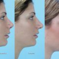 The alar base should also be evaluated for dynamic changes. A common complaint is the “spreading” of the nasal base and complete loss or blunting of nasal definition when smiling. Widening of the nasal base with a smile is an inevitable effect of contracting facial muscles on the nose. Providing more support to the nasal tip, alar base, and midvault counters the forces of contracting facial muscles and minimizes the degree of blunting when smiling.