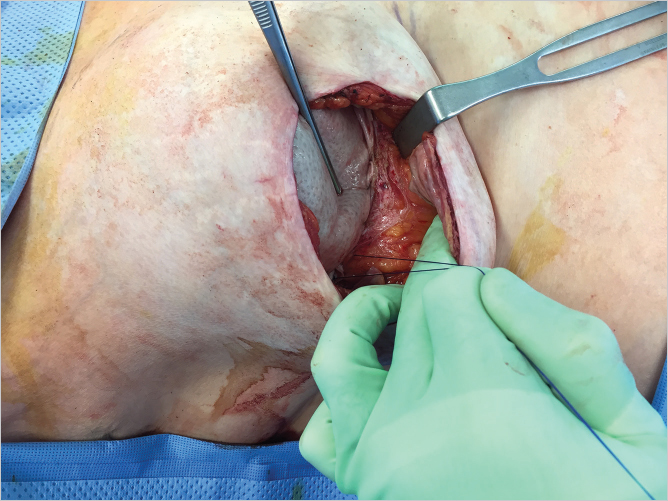 Fig. 43.3 Pectoralis major sutured back onto the chest wall.