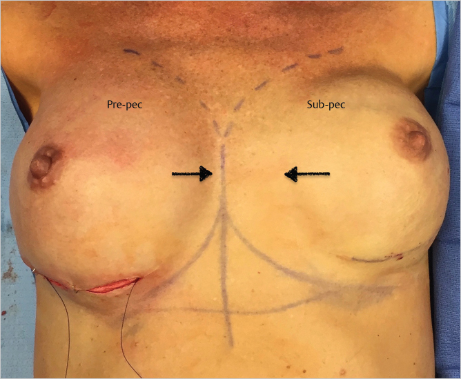 The subpectoral pocket has been the gold standard position for implant-based breast reconstruction for over five decades. Recently, considerable attention has been focused on performing immediate as well as delayed reconstruction in the prepectoral space in an effort to eliminate many of the complications associated with subpectoral implant positioning. Subpectoral complications include animation deformity, tightness, functional limitations on shoulder girdle motion, and problems with implanted distortion. Attempts to correct some of these aesthetic issues with fat grafting have met with disappointing results, while its impact on functional problems has been negligible.