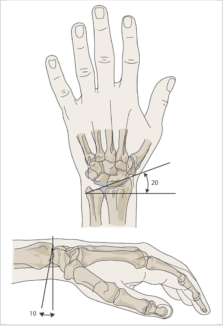 Melone described three standard radiographic parameters of the distal radius as follows (► Fig. 45.3) 3 :